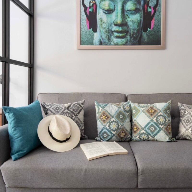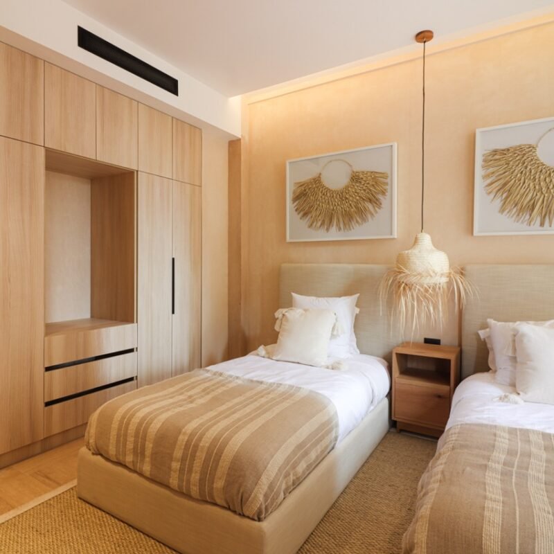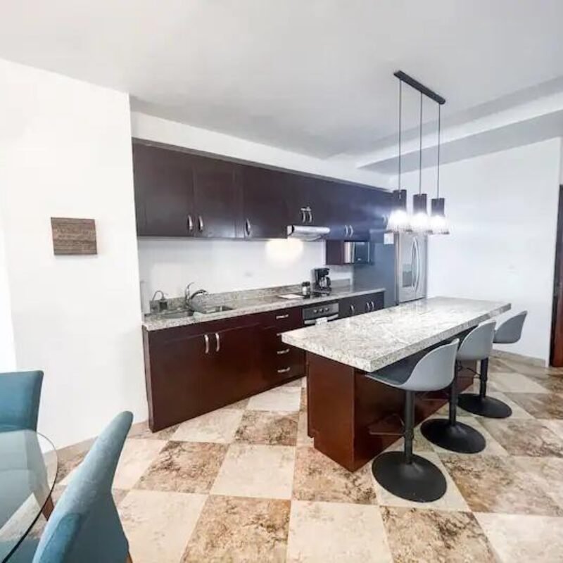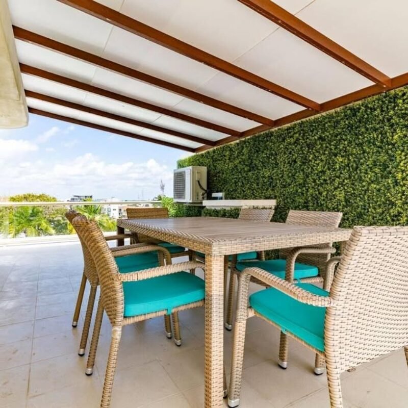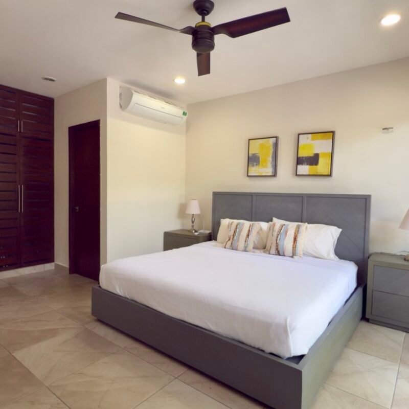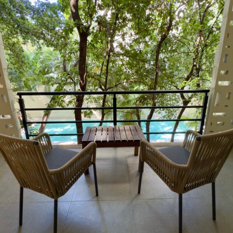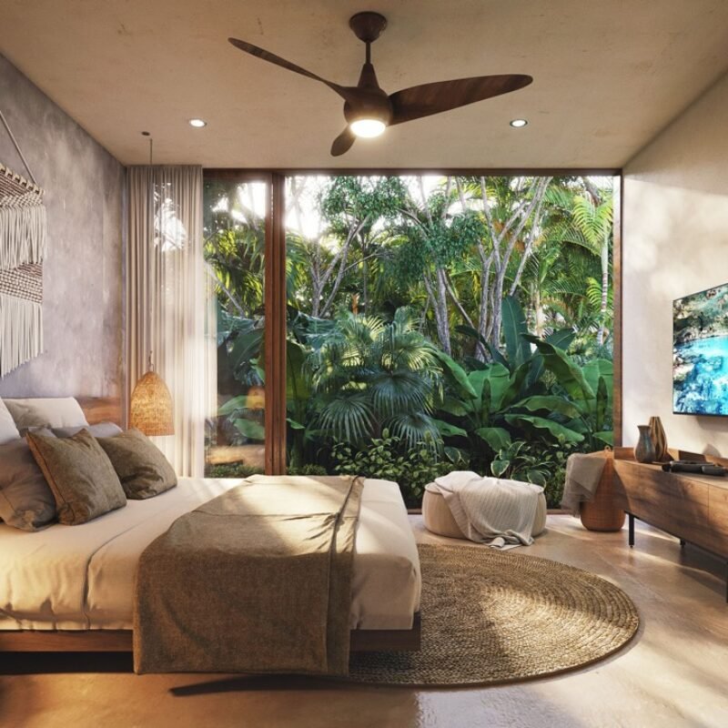 This two-bedroom condominium at Villaggio is located in the heart of Aldea Zamá, Tulum, one of the