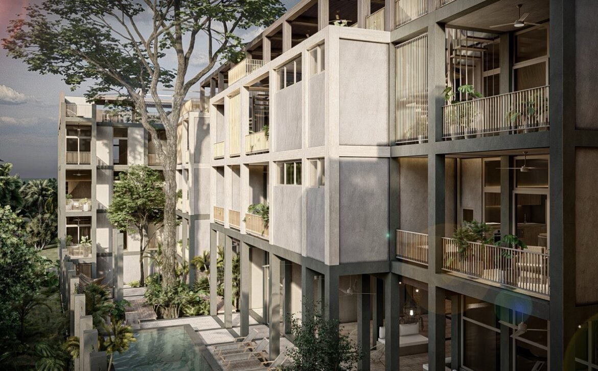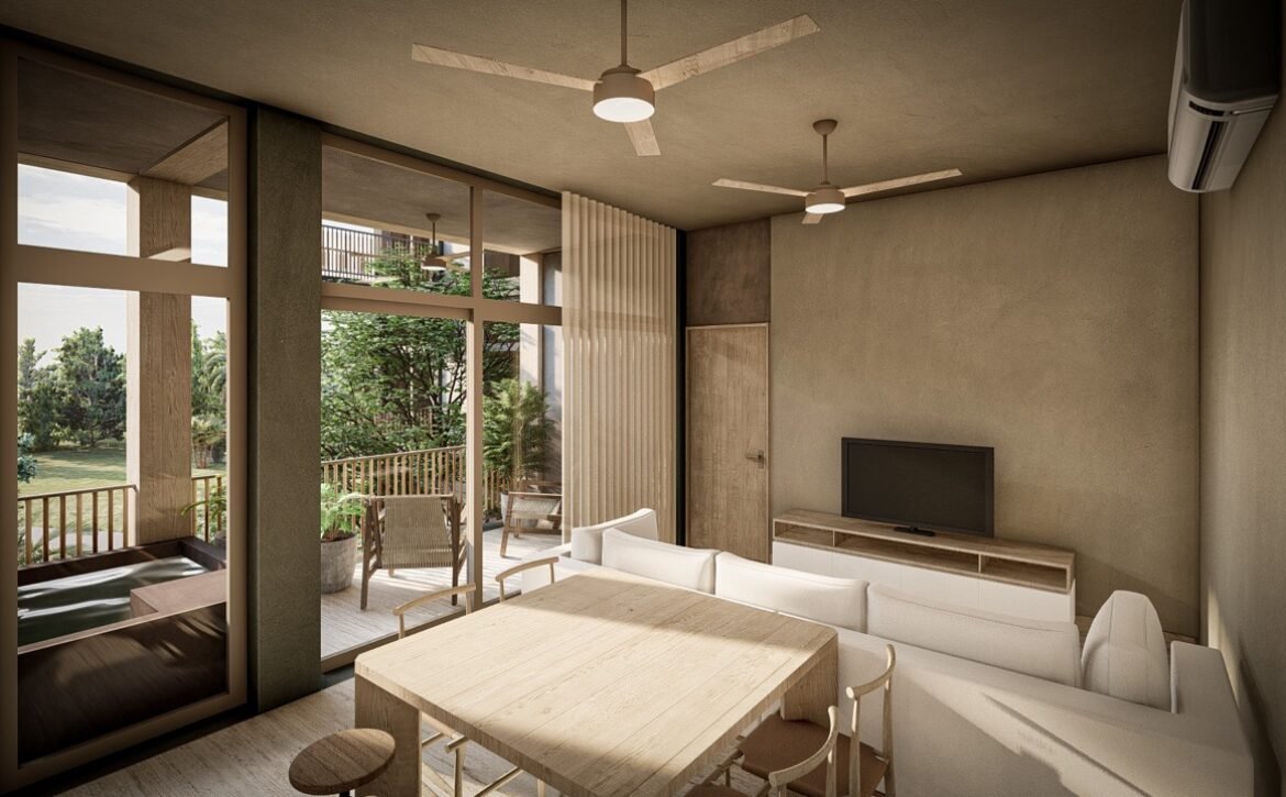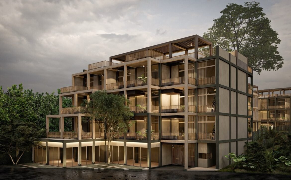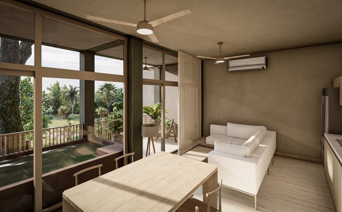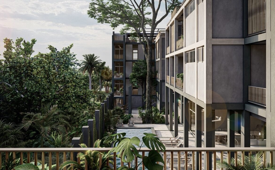 CEIBA offers amenities that elevate everyday living, including a main swimming pool at ground level, rooftop pools with panoramic lagoon views, sunbed areas, covered social lounges, hammock zones, coworking spaces, a fully equipped gym, pétanque courts, and lush interior gardens centered around a majestic ceiba tree, symbolizing balance and connection. The development also includes parking facilities and commercial units with terraces that complement its urban-residential character.