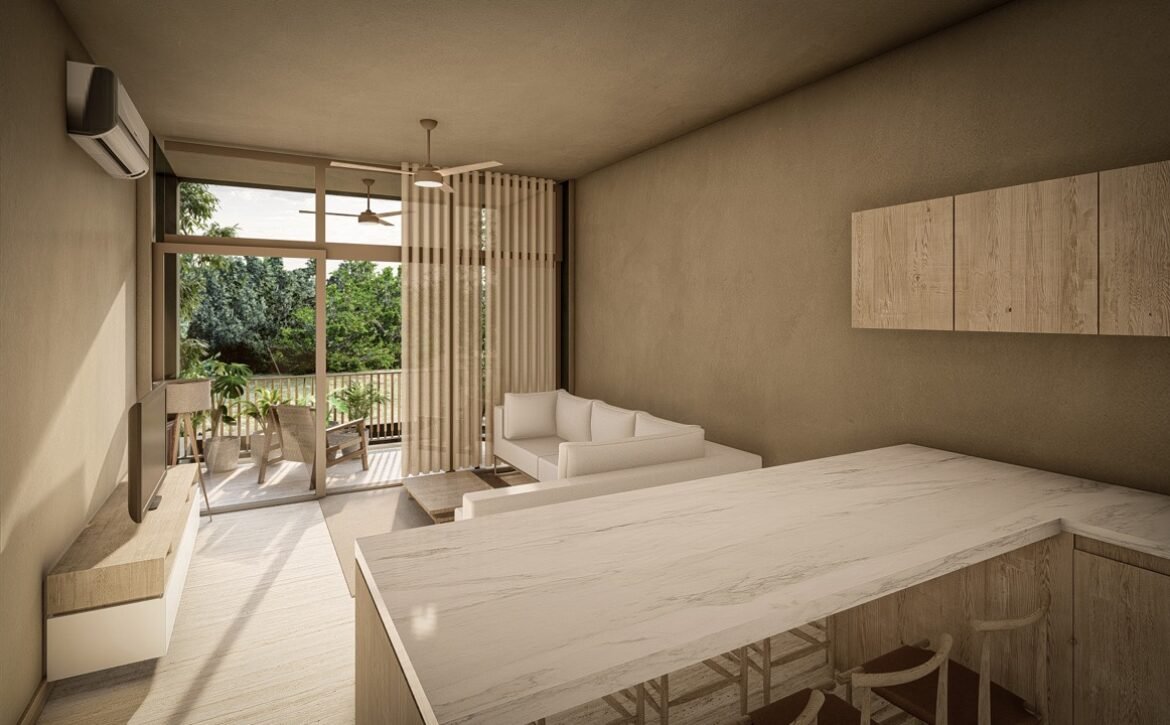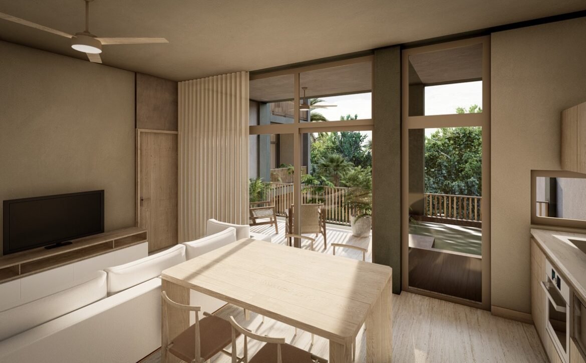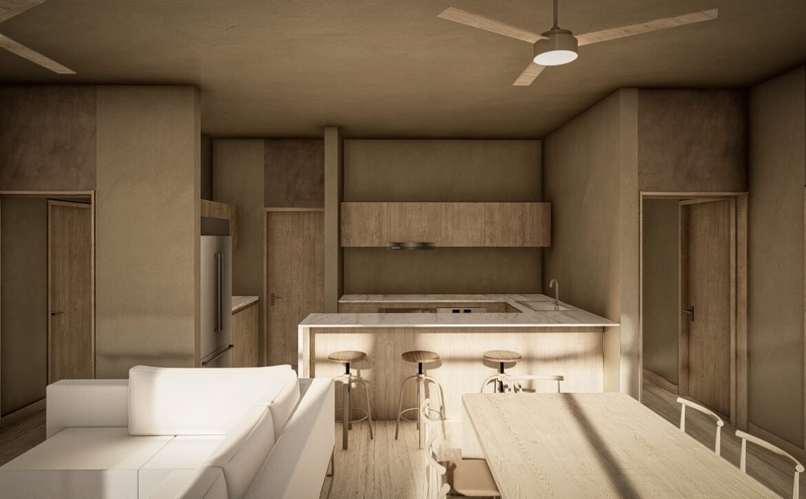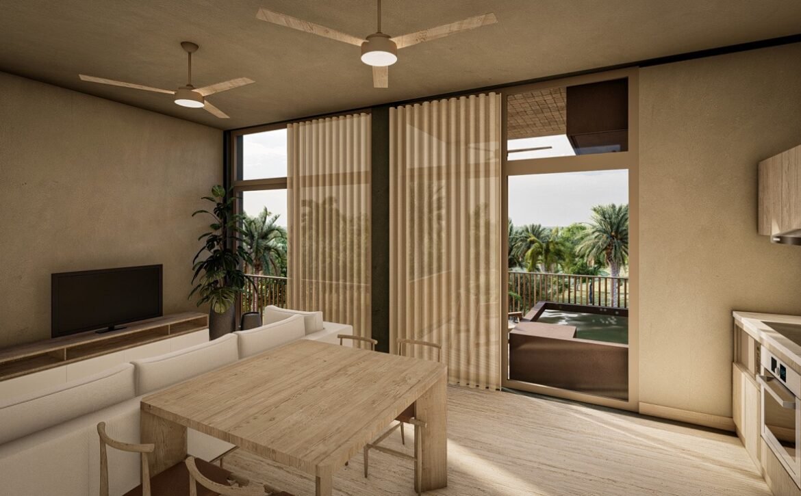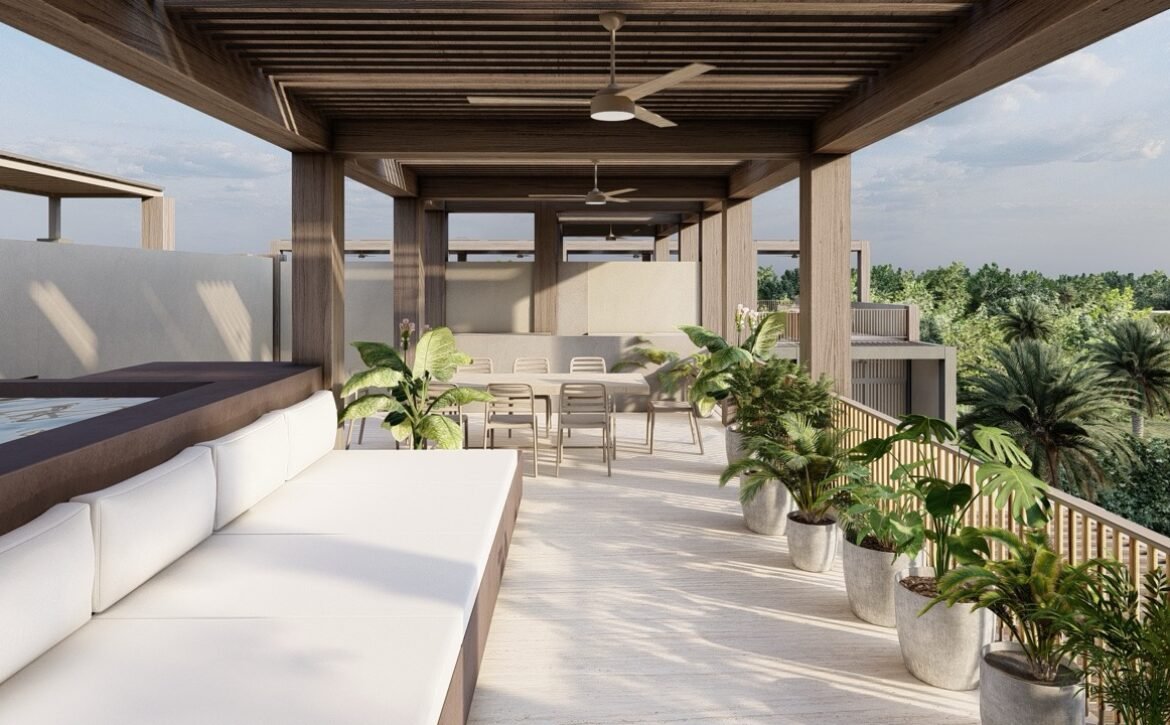 CEIBA offers amenities that elevate everyday living, including a main swimming pool at ground level, rooftop pools with panoramic lagoon views, sunbed areas, covered social lounges, hammock zones, coworking spaces, a fully equipped gym, pétanque courts, and lush interior gardens centered around a majestic ceiba tree, symbolizing balance and connection. The development also includes parking facilities and commercial units with terraces that complement its urban-residential character.