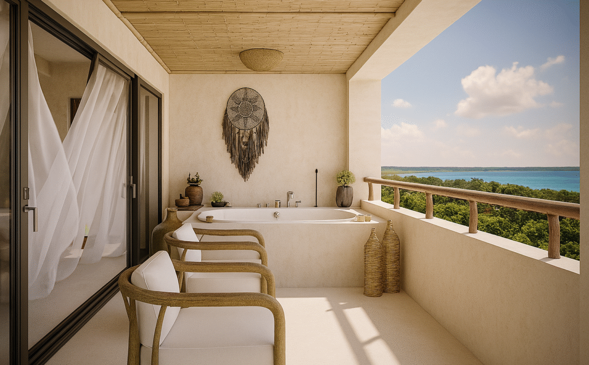Hauza is a boutique residential development located directly on the shores of Bacalar Lagoon, one of the most breathtaking natural wonders of the Mexican Caribbean. Conceived as a sanctuary of wellness, refined luxury, and nature-connected living, HAUZA stands out for its avant-garde architecture, locally sourced materials, and design philosophy that honors the surrounding jungle and turquoise waters.