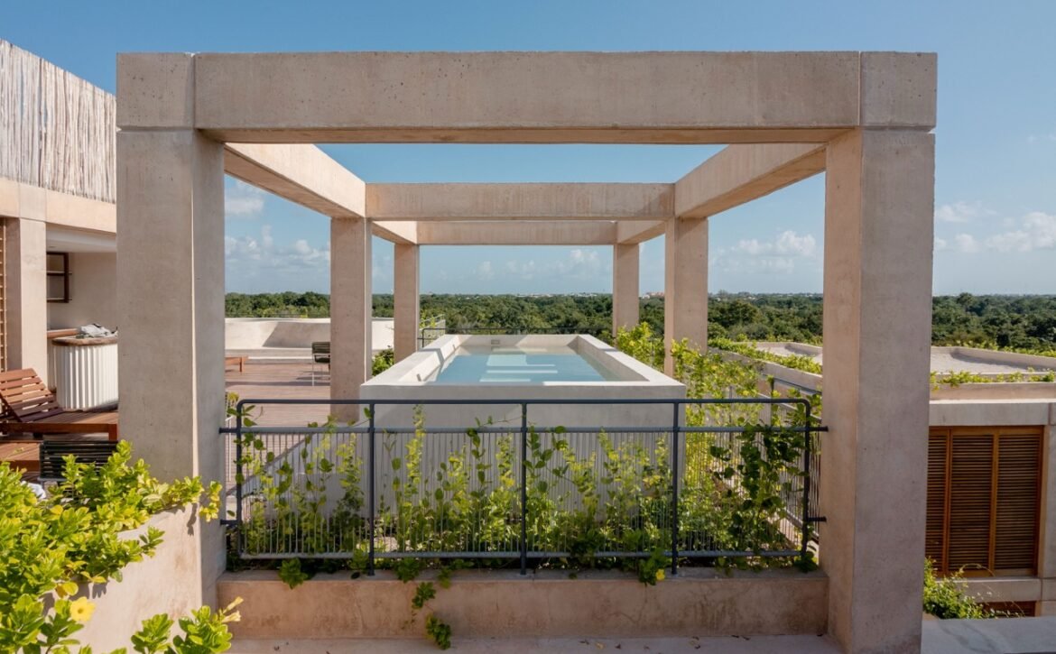 Enjoy panoramic 270-degree views of the lush jungle, golf course, and pool. With windows on three sides, the condo is filled with natural light, offering a spacious, bright, and serene atmosphere. Its privileged location, surrounded by rooftop gardens and with unobstructed sky views, creates a unique sense of privacy and connection with nature.